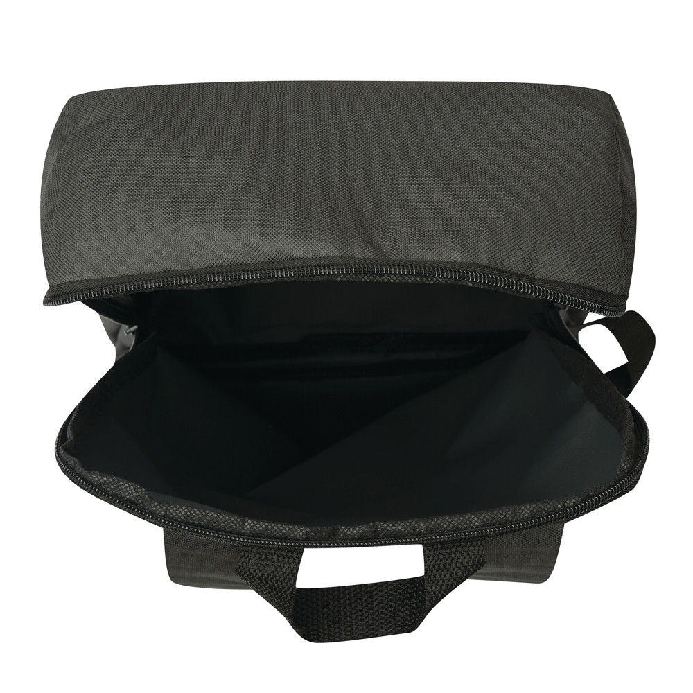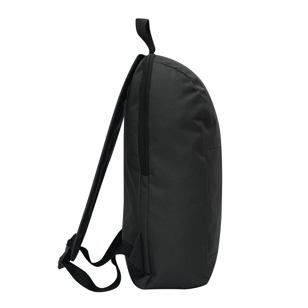 Rugtas COMMON: voorvak met verticale rits, 1 hoofdvak met rits, verstelbare gefoamde schouderbanden, draagriem.