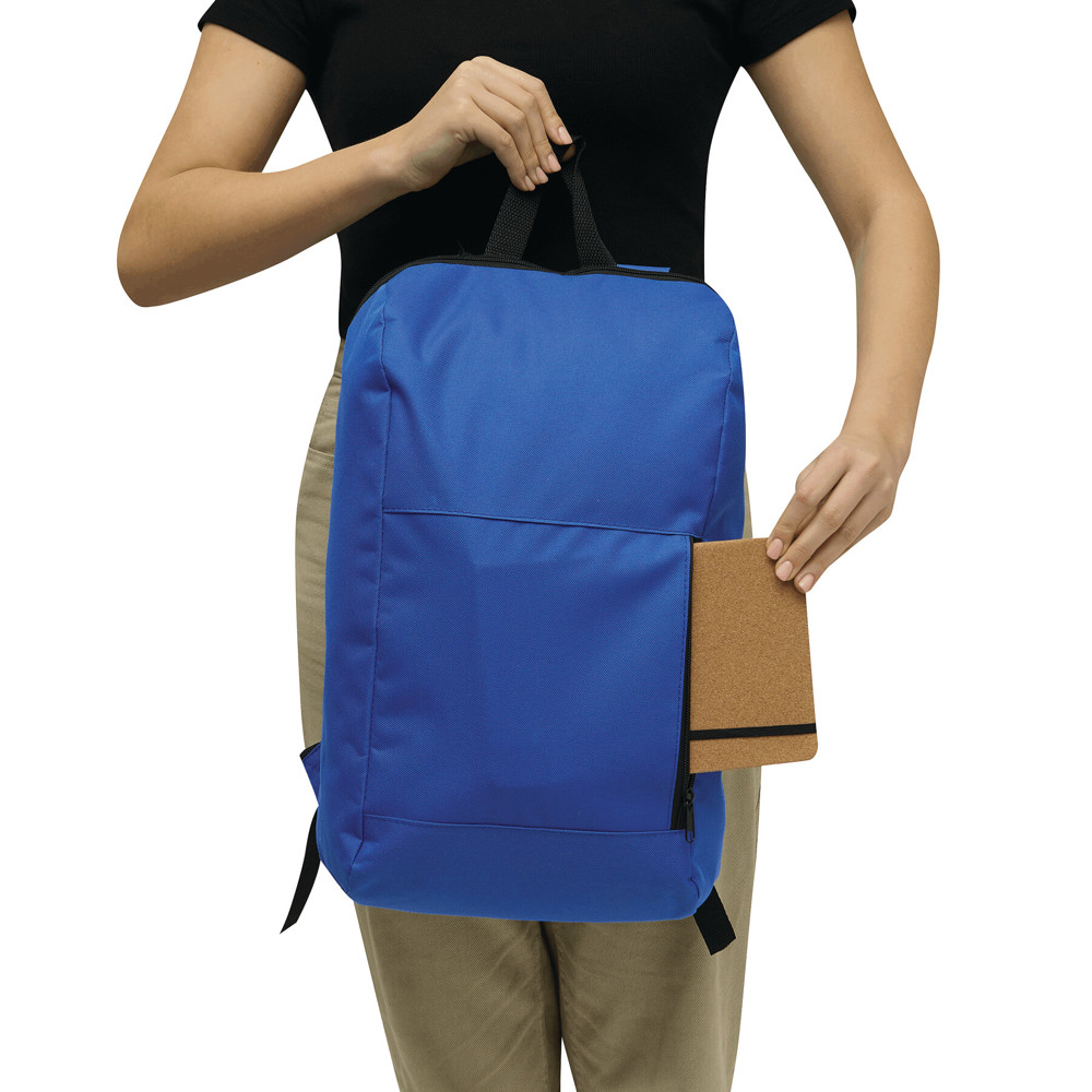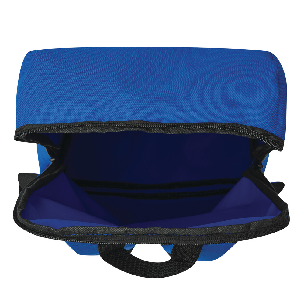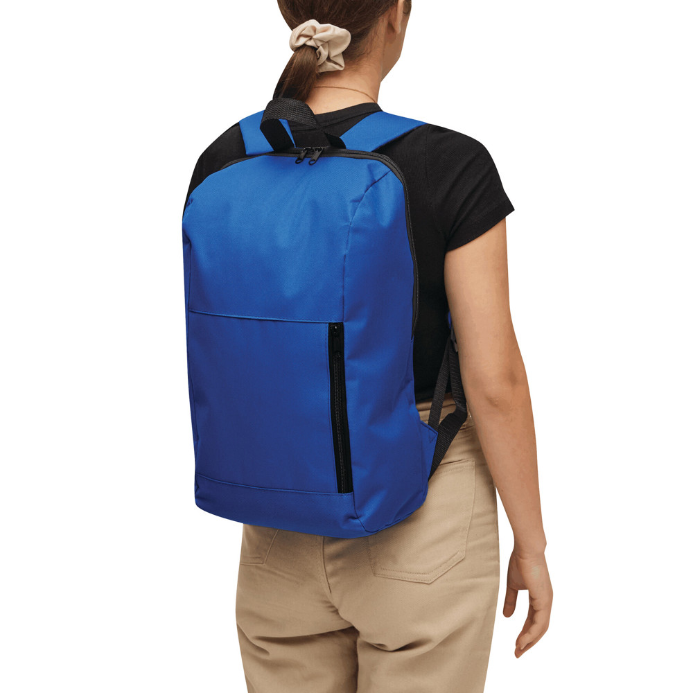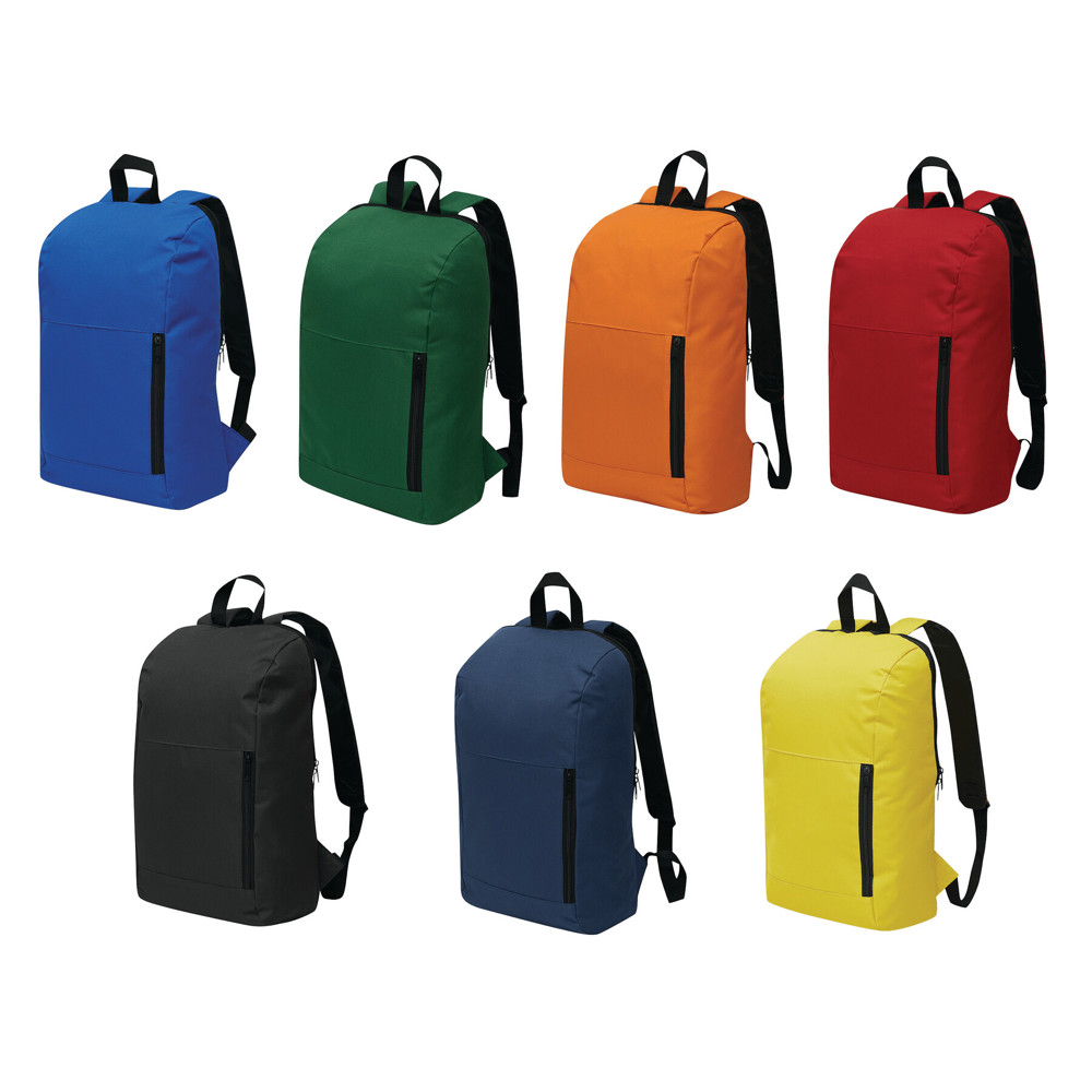 Rugtas COMMON: voorvak met verticale rits, 1 hoofdvak met rits, verstelbare gefoamde schouderbanden, draagriem.