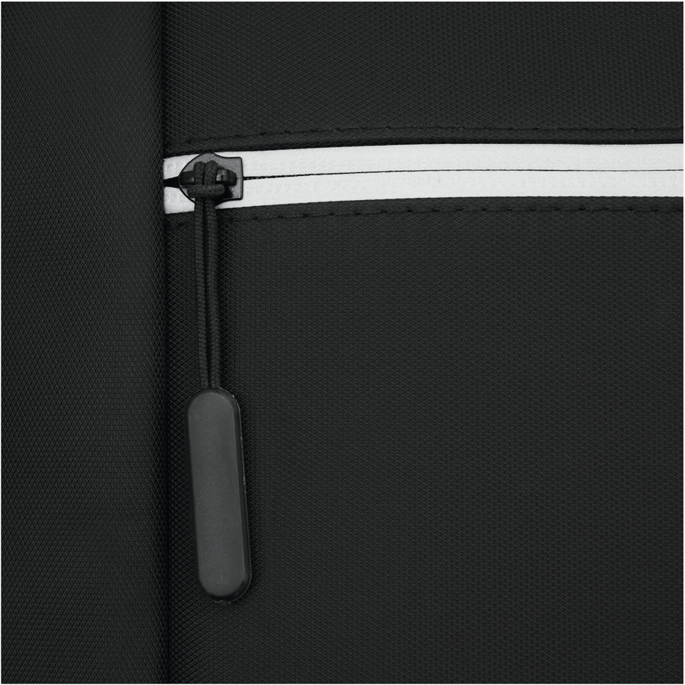 Rugtas PRINCETON: 1 voorvak met ritssluiting en organizer (2 steekvakken, 2 pennenhouders), 1 voorvak met horizontale ritssluiting en reflecterende strip, 1 steekvak aan de zijkant, 1 hoofdvak met ritssluiting en gefoamd binnenvak voor laptop of tablet, gefoamd handvat, ergonomisch gevormde gefoamde schouderriemen en gefoamd rugpand, riem als reporterfunctie achterop.