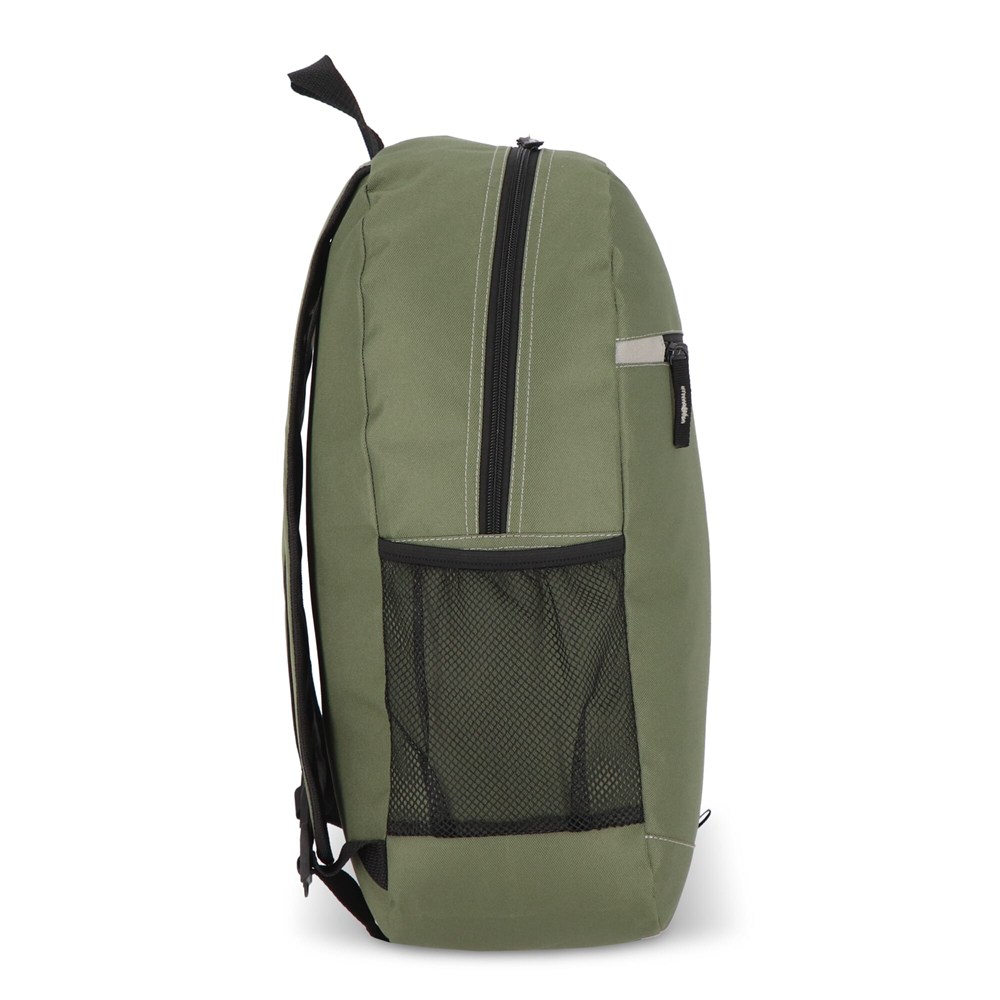 Deze rugzak is gemaakt van gerecycled PET. Hij heeft verstelbare gewatteerde schouderbanden, een handvat aan de bovenkant, een voorvak met ritssluiting, een zijvak van gaas en een kleine reflecterende strip voor zichtbaarheid 's nachts.