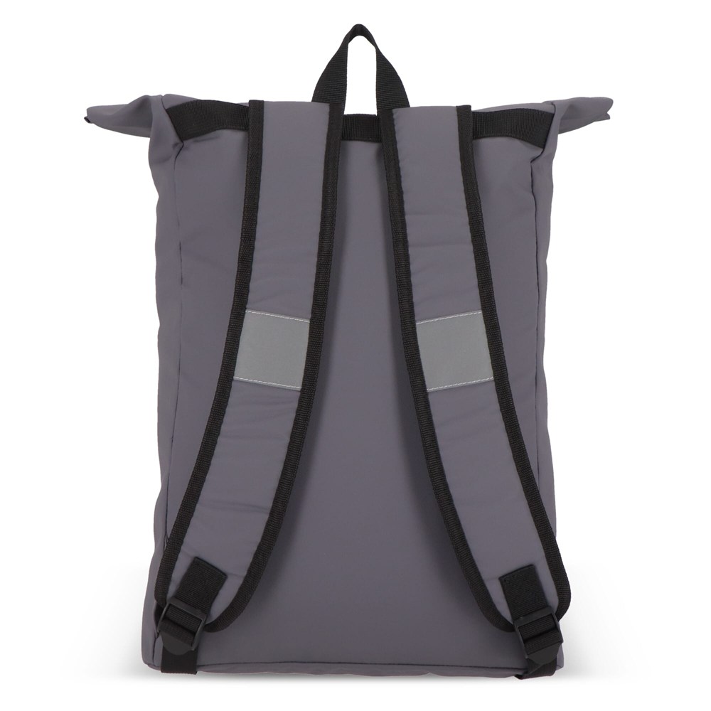 Deze rugzak met roltop is gemaakt van gerecycled PET met PU-coating in 600D-materiaal. Voorzien van reflecterende strips op de schouderbanden en rond het voorvak voor extra veiligheid in het donker. Met handvat, verstelbare gewatteerde schouderbanden en een gewatteerd laptopvak.