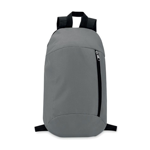 Rugzak van 600D polyester met voorvak met rits, verstelbare draagbanden en draaglus aan de bovenzijde. Achterzijde is gewatteerd en uitgevoerd in 210D polyester.