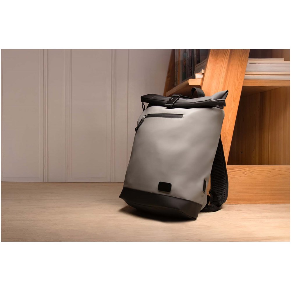 Rugzak met een vak aan de voorkant en een waterdichte rits en gevoerde vakken voor een laptop of tablet. De rugzak heeft een vormvaste structuur en een gevoerde bodem voor een goede bescherming van de inhoud van de tas. Geleverd in een non woven opbergetui.