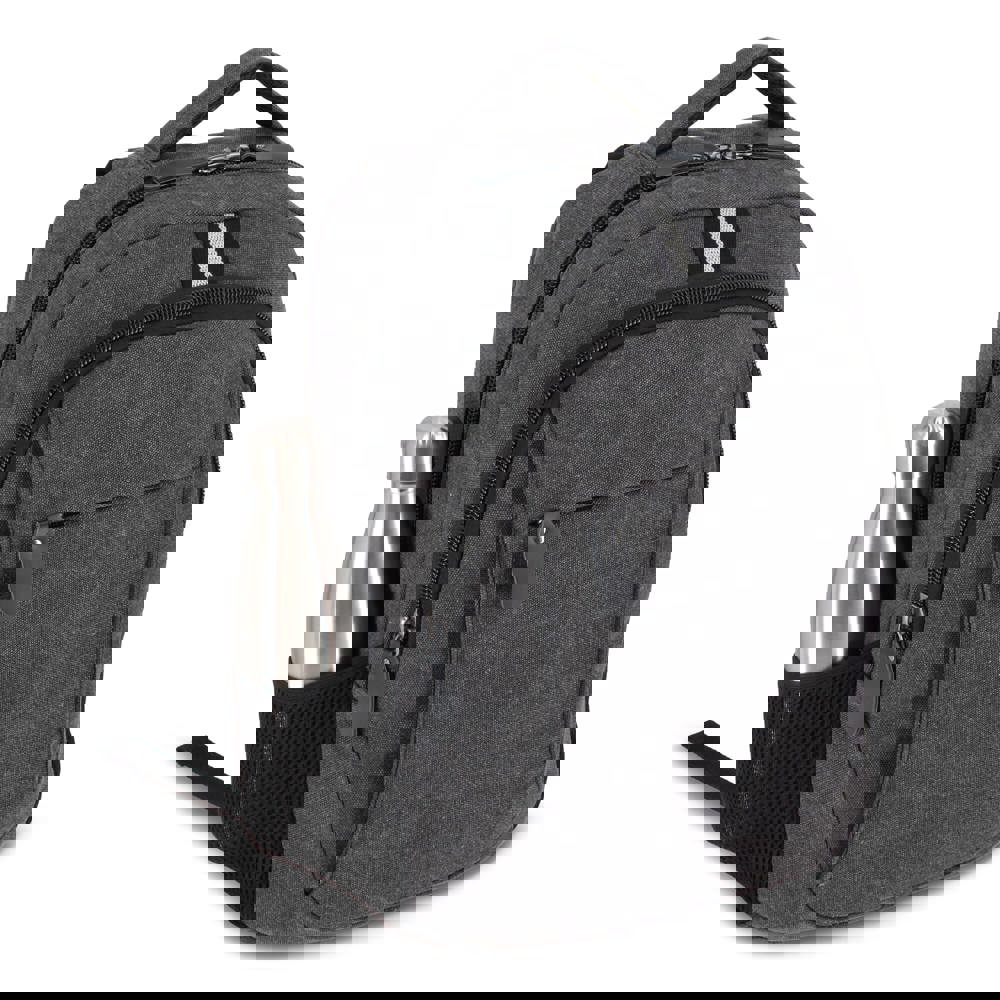 Stijlvolle rugzak van gerecycled katoenen canvas. Met 100% gerecyclede reflecterende banden, luxe ritsen en trekkers en 100% gerecyclede polyester voering. Met gewatteerde rug, handgreep, verstelbare schouderbanden, 2 zijvakken voor flessen of een paraplu, voorvak en laptopvak aan de binnenkant.