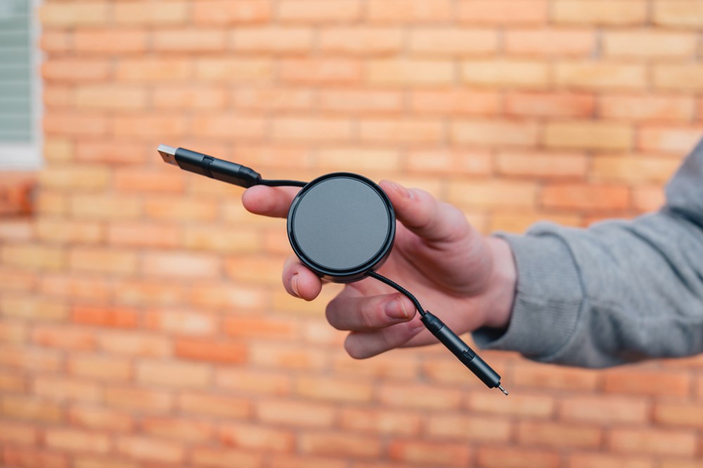 Uittrekbare oplaad- en datakabel gemaakt van RCS (Recycled Claim Standard) gecertificeerd...meer