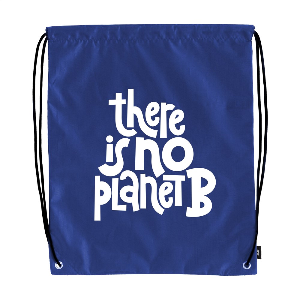Rugzak van 210D RPET polyester. Met aanrijgkoorden. GRS-gecertificeerd. Totaal gerecycled...meer