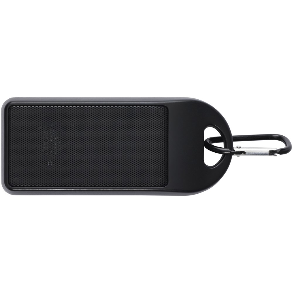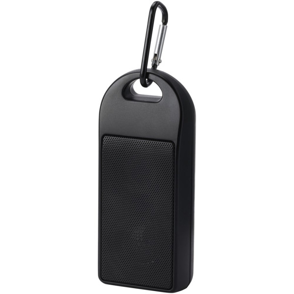 RCS gerecyclede 3 W Bluetooth®-speaker die muziek, podcasts enz. afspeelt vanaf elk Bluetooth®-apparaat, waardoor het een ideale metgezel is voor elke gelegenheid. Dankzij de meegeleverde karabijnhaak bevestig je de speaker eenvoudig aan een rugzak en is hij door de IPX4-rating beschermd tegen een sporadische regenbui. Geniet tot 1,5 uur van muziek op maximaal volume dankzij de 300 mAh Li-ionbatterij. De oplaadtijd is 1,5 uur. Bluetooth® 5.0 met een werkbereik van ongeveer 10 meter. Geleverd met een gebruikershandleiding, een karabijnhaak, een 50 cm USB-A naar Type-C-oplaadkabel en verpakt in een doos van gerecycled kraftpapier.