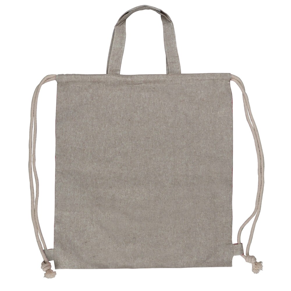 Handig rugzakje met treksluiting en handvat gemaakt van gerecycled katoen. De gevarieerde...meer