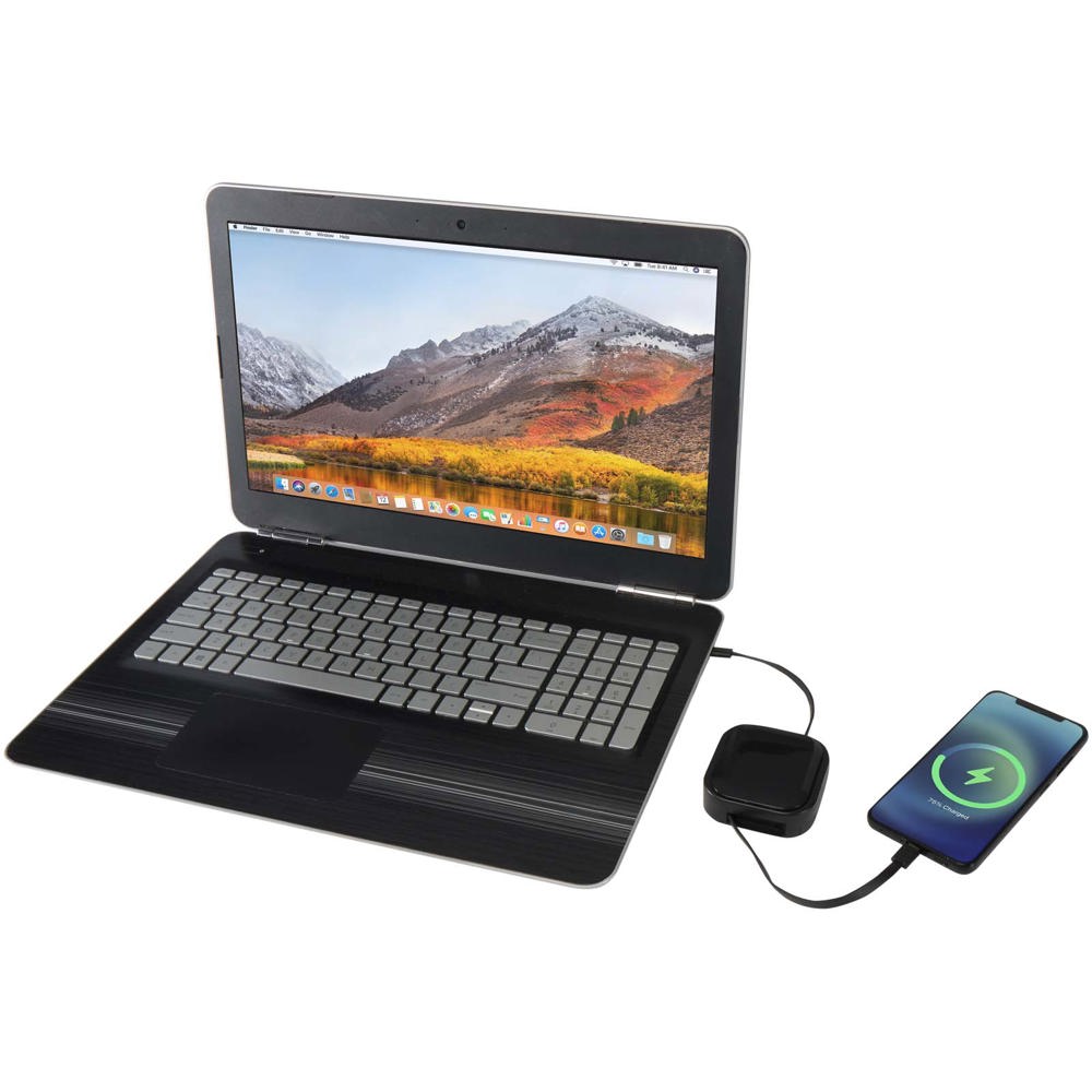 De Gloas is je alles-in-één oplaad- en smartphonetool, gemaakt van gerecycled plastic. Hij heeft een intrekbare 100 W USB-C-snellaad- en gegevensoverdrachtkabel, samen met een USB-A-adapter en een 2-in-1 microUSB-/Lightning-adapter. Krachtig genoeg om de meeste laptops, tablets en smartphones snel op te laden en de kabel is ook compatibel met zowel CarPlay en Android Auto. Binnenin vind je een pin voor het uitwerpen van simkaarten, opslagruimte voor een nano-simkaart en een microSD-kaart, en een ingebouwde telefoonstandaard, perfect om gemakkelijk video's te bekijken of videogesprekken te voeren. Alles wat je nodig hebt, in één compact ontwerp.