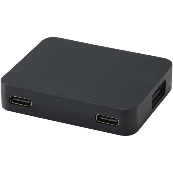 Gaia 4 poorts USB hub met uitgangen voor USB-A en Type-C en dubbele ingang van gerecycled plastic
