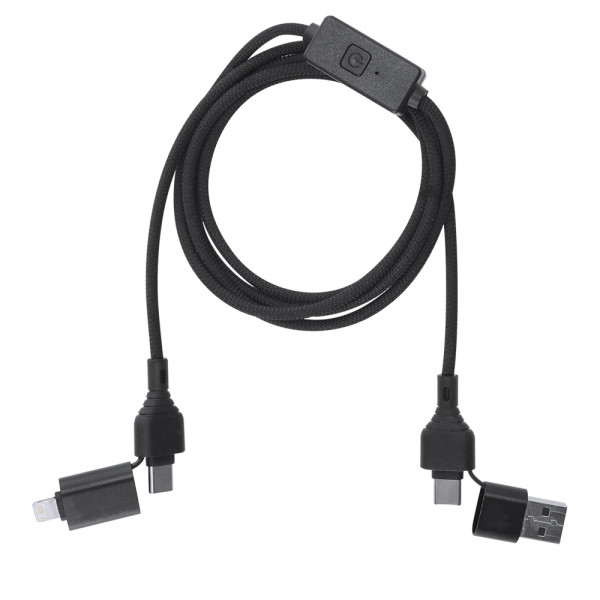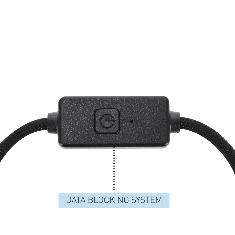 60W oplaad- en datakabel met gegevensbeschermingssysteem. Gemaakt van gerecycled aluminium in combinatie met RPET en gerecycled ABS. Voorzien van een geïntegreerde veiligheidsknop waarmee de datatransferfunctie kan worden uitgeschakeld — een praktische oplossing om persoonlijke en vertrouwelijke informatie te beschermen bij gebruik van de kabel in openbare ruimtes, waardoor ongeautoriseerde toegang of hackpogingen worden voorkomen. Invoeraansluitingen: Type-C en USB; uitvoeraansluitingen: Type-C en Lightning. Gerecycled aluminium is een materiaal met vrijwel oneindige recyclemogelijkheden, zonder verlies van de oorspronkelijke eigenschappen en met minder energieverbruik in dit proces. RPET-materiaal wordt gemaakt van gerecycled plastic, waardoor het hergebruik van plastic afval wordt gestimuleerd en bijgedragen wordt aan de duurzaamheid van de planeet.