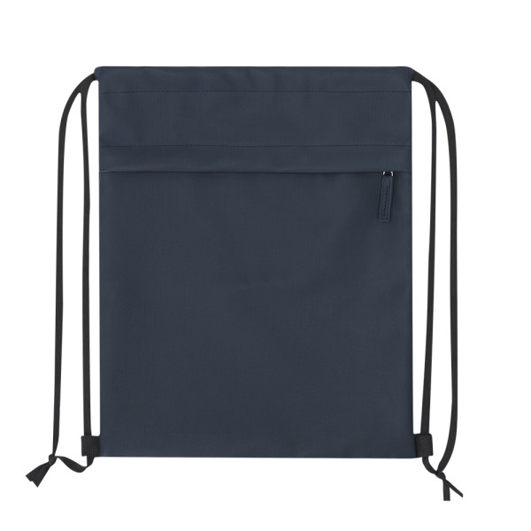 Trekkoordrugzak gemaakt van zacht PU gecombineerd met stevig 600D polyester. Voorzien van een functioneel voorvak met ritssluiting en bijpassende PU-trekker.