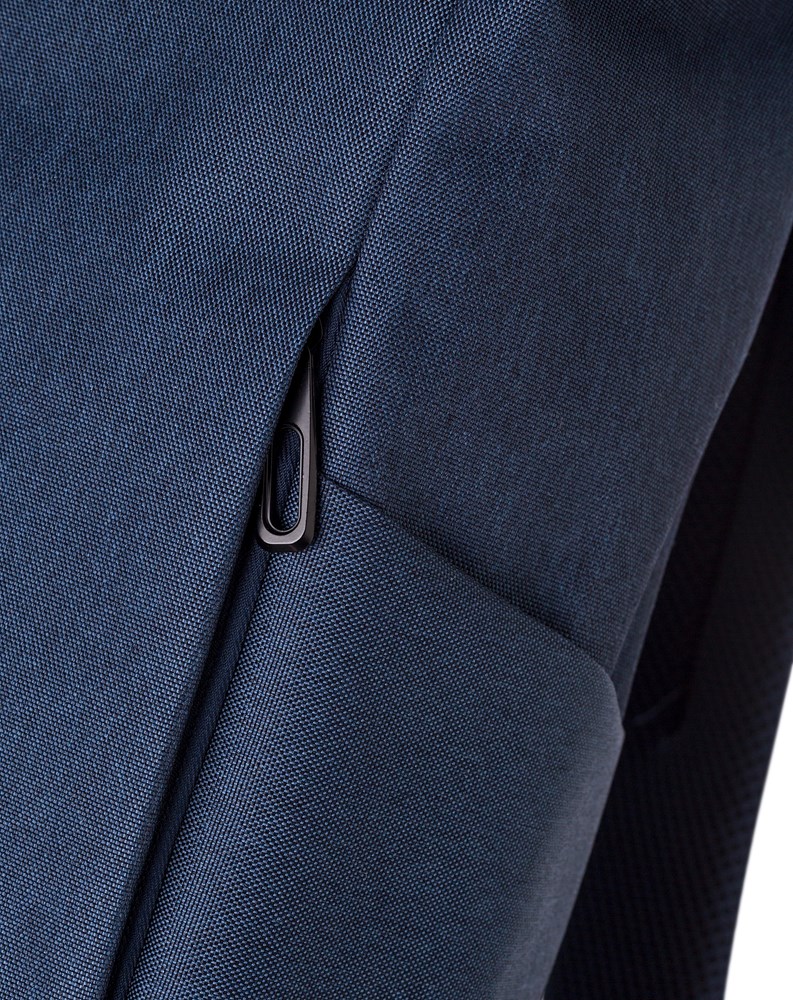 Polyester (600D) rolsluiting rugzak. Eén groot vak met ritssluiting met twee steekvakken en een laptopvak. Voorvak met ritssluiting. Gewatteerde achterkant en schouderbanden. Metalen haaksluiting.