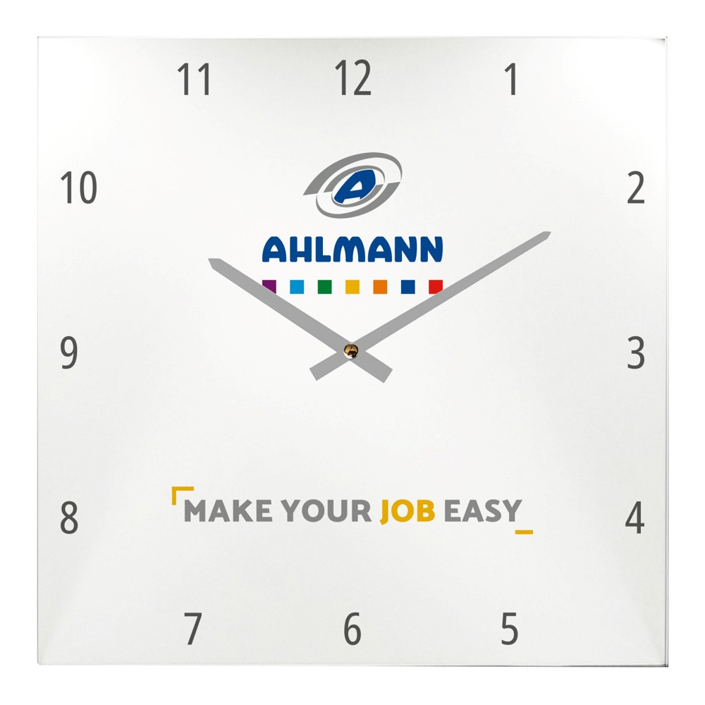 Glasklok vierkant quartz, geheel glas. Wijzers in zwart, wit of zilver. De glasplaat is geheel naar wens te bedrukken in full colour.GRATIS ontwerpservice voor uw klok!