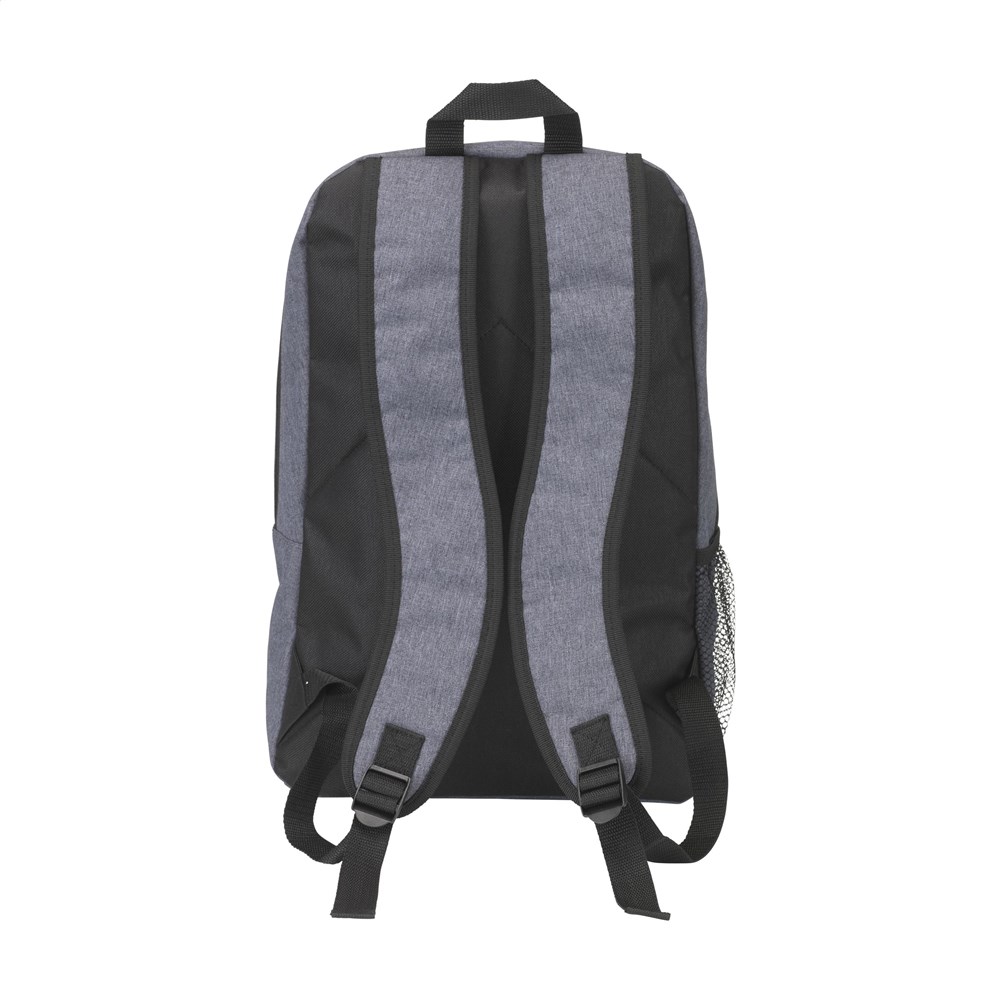 Rugzak van 600D/300D polyester. Met royaal hoofdvak, voorvak met rits, gaasvak, verstelbare, gewatteerde mesh schouderriemen, gewatteerde rugzijde en draaglus. Inhoud ca. 25 liter.
