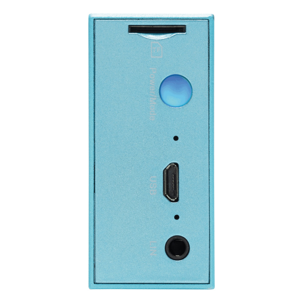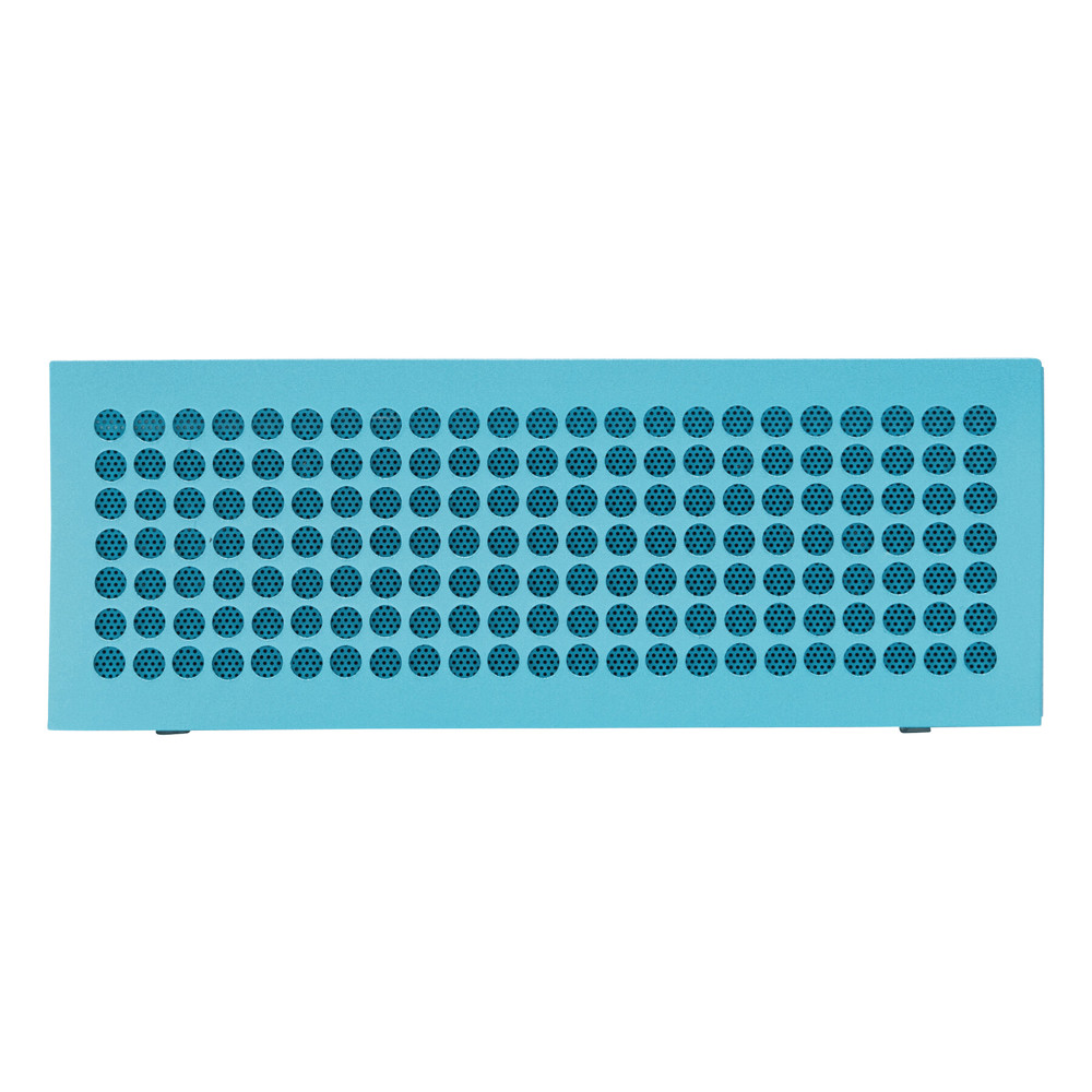 Wireless speaker BRICK van aluminium en ABS; 2x3 Watt, te koppelen aan oa telefoon, tablet e.d. bereik ca. 10 meter, ook aan te sluiten via 3,5mm line in-aansluiting (kabel ca 54cm). Met micro-SD-slot, speakerfunctie, sterke oplaadbare Li-ion batterij, capaciteit 1.200mAh, op rubber voetjes voor een betere stabiliteit.