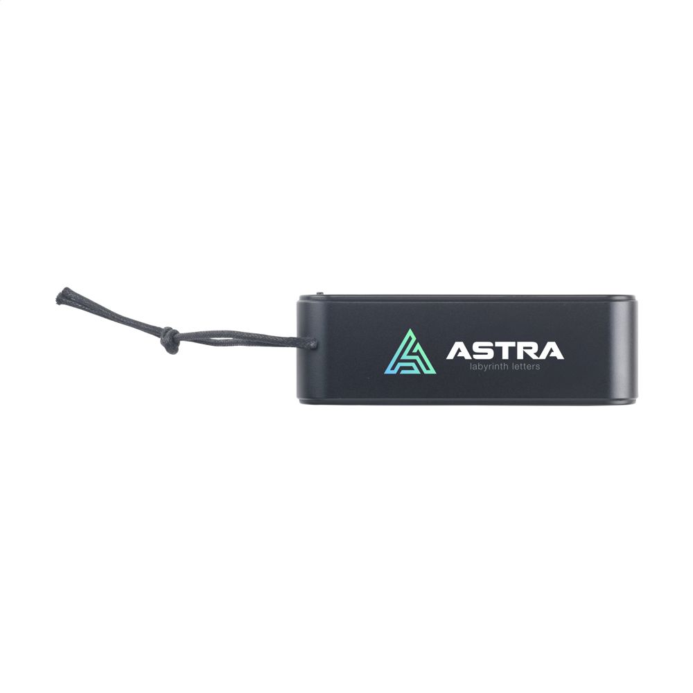 Draadloze bluetooth speaker met behuizing van gerecycled aluminium en RPET. Een klassiek model met afgeronde hoeken. Bluetooth versie 5.3. Eenmaal opgeladen staat de ingebouwde 1200 mAh lithiumbatterij garant voor een speelduur van maximaal 3,5 uur (bij een maximaal volume). Draadloos bereik tot 10 meter. Eenvoudig te bedienen en compatibel met de meest gangbare smartphones en tablets. Output luidspreker: 2 x 5W. Deze speaker produceert een optimaal geluid. Incl. USB-C/USB-C oplaadkabel van gerecycled TPE en gebruiksaanwijzing. RCS-gecertificeerd. Totaal gerecycled materiaal: 25%. Per stuk verpakt.