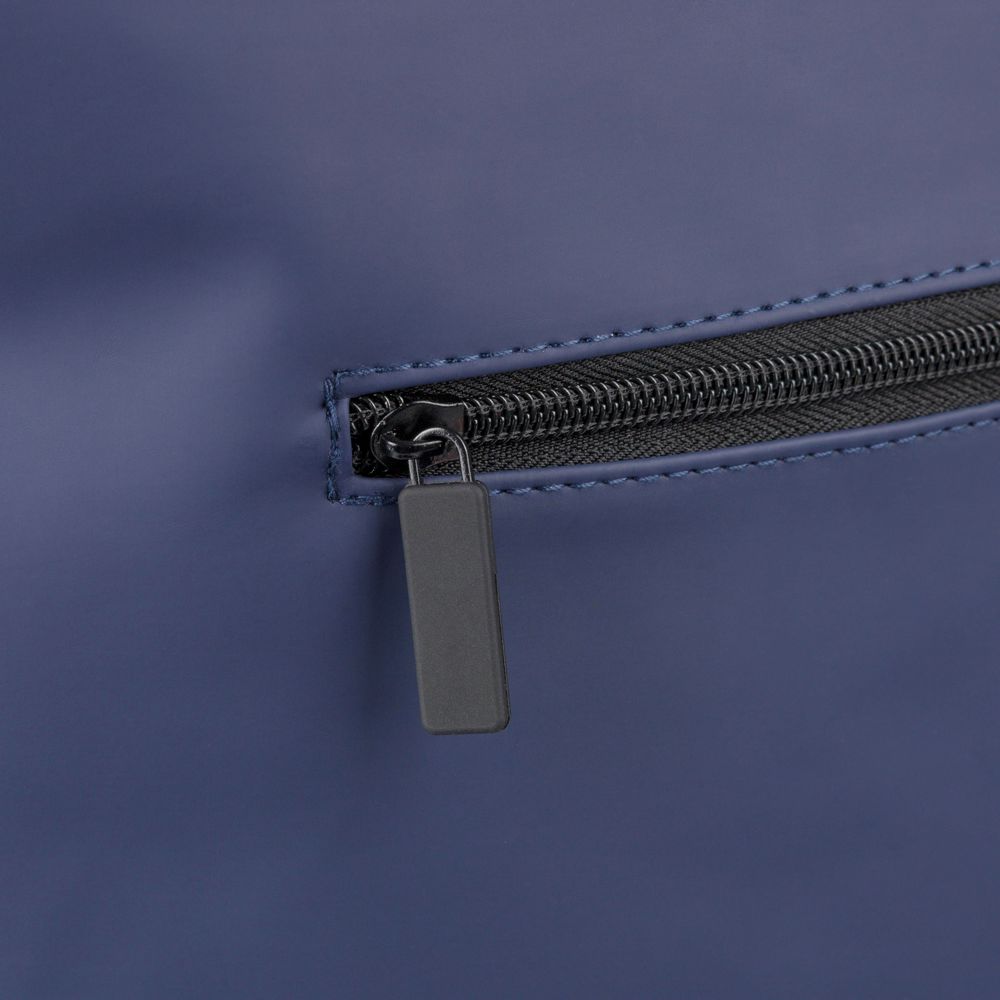 Rugzak van gerecycled PU met een inhoud van 19 liter, rolltop-sluiting en klittenbandstrip. Voorzien van een klein voorvak met ritssluiting, een binnenvak geschikt voor een 16-inch laptop en een voering van 210D gerecycled polyester. Inclusief verstelbare geventileerde schouderbanden, een handvat aan de bovenkant en één gerecycled label aan de binnenzijde.