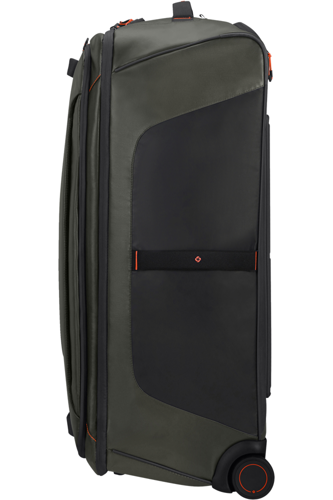 De Duffle/wh 79 is de grootste reistas voor ruimbagage op wielen in de collectie. Het ruime hoofdvak is voorzien van inpakriemen om kleding netjes op zijn plek te houden tijdens je reis. Onder de opening bevindt zich een groot gaasvak met ritssluiting waarmee items apart van de rest kunnen worden opgeborgen. Dankzij het TSA-cijferslot op het hoofdvak zijn je spullen ook nog eens extra veilig opgeborgen. De tas is voorzien van een ruim voorvak aan de voorkant en 2 kleinere ritsvakken aan de zijkant. Alle ritsen zijn waterafstotend, zodat je spullen droog blijven in alle weersomstandigheden.