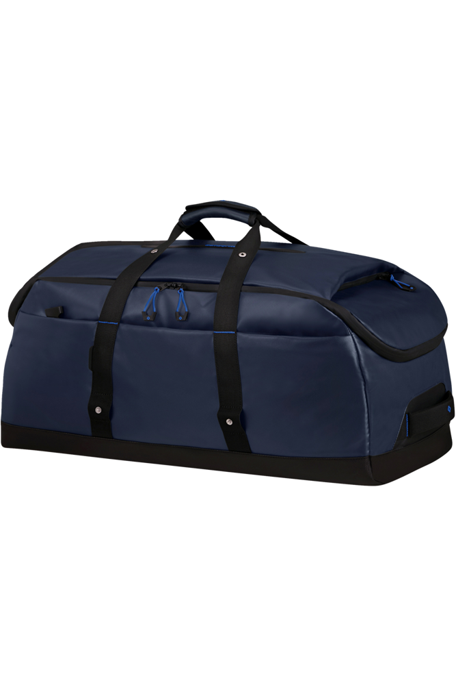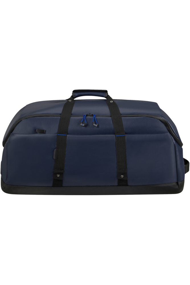 De Duffle L is de grootste reistas in de collectie die ook als rugzak gedragen kan worden. Het ruime hoofdvak is voorzien van diverse ritsvakken zodat je spullen apart kunt opbergen en inpakriemen zodat kleding netjes op zijn plek blijft liggen tijdens je reis. De ritsen van het hoofdvak zijn waterafstotend zodat je spullen in alle weersomstandigheden droog blijven. Bovenop het deksel van het hoofdvak heeft de tas een vak met ritssluiting om kleinere spullen altijd binnen handbereik te houden.
