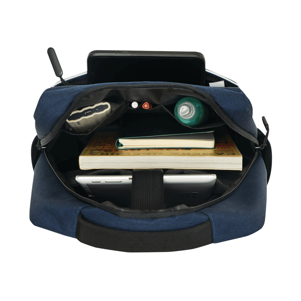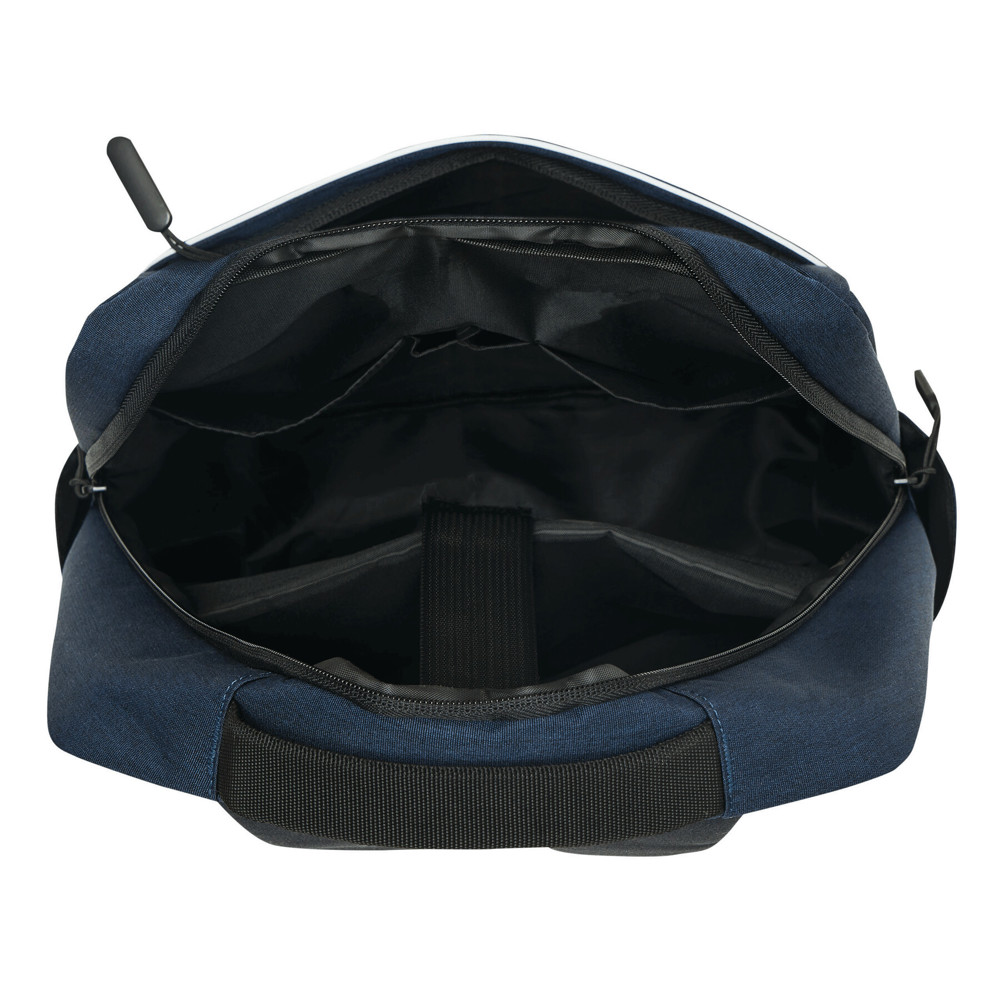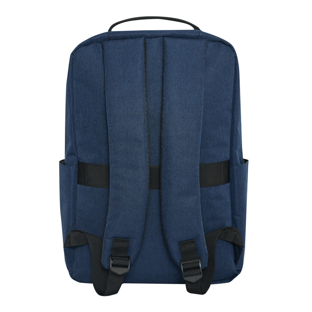 Rugzak GHENT: van gerecycled polyester (RPET), voorvak met ritssluiting en reflecterende strepen, hoofdvak met ritssluiting en gewatteerd binnenvak voor laptop of tablet, organizer met 4 insteekvakken, 2 zijvakken, gewatteerde draaggreep, gewatteerde en verstelbare schouderbanden, band op de achterkant voor bevestiging aan een trolley of als reporterdraagfunctie.