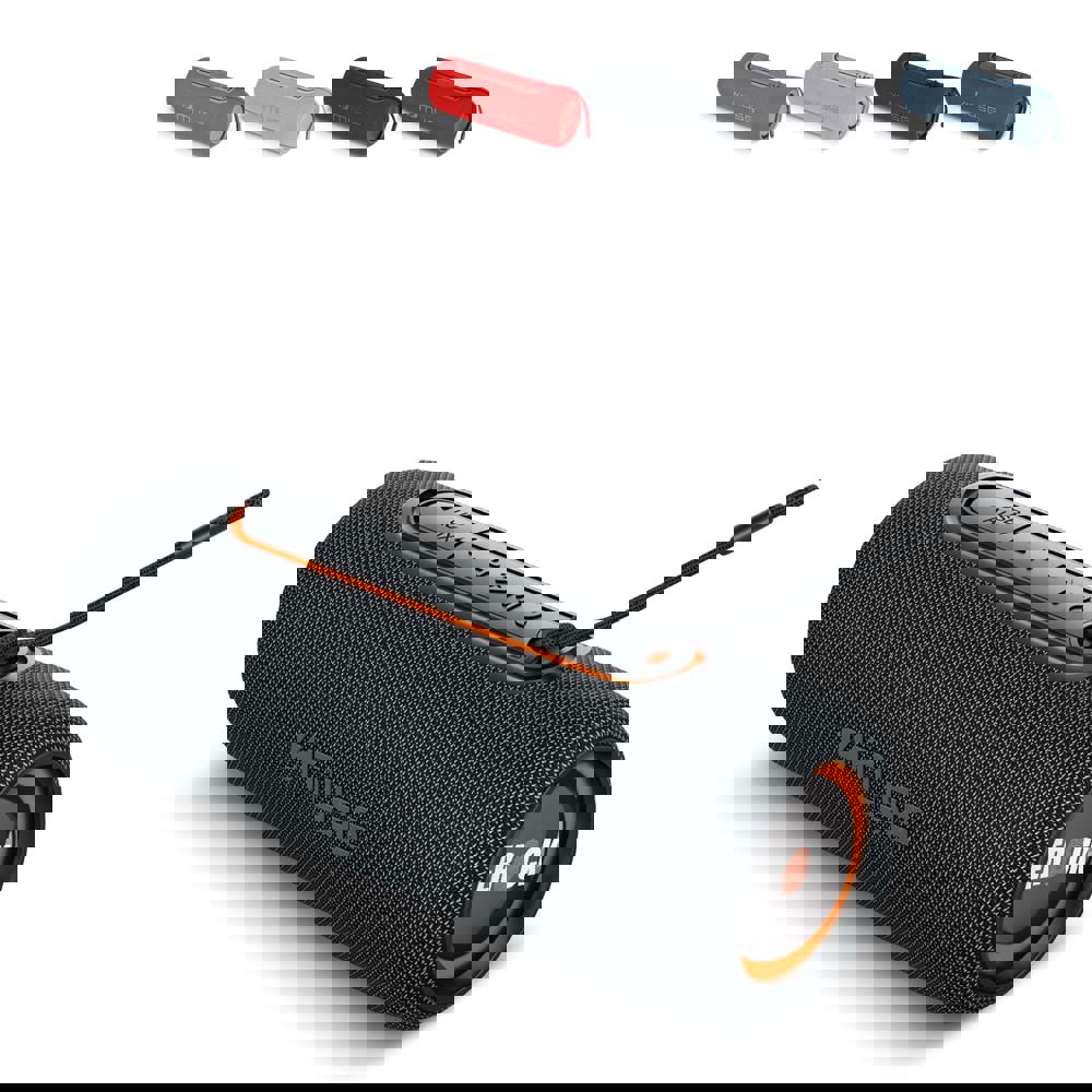 Stoere waterbestendige (IPX5) draadloze speaker met LED details, om zowel binnen als buiten van muziek te genieten. De speaker biedt een kristalhelder geluid met een maximum vermogen van 20W. De batterij heeft een grote capaciteit van 3000mAh en kan snel worden geladen met de USB-C aansluiting. Voorzien van handsfree functie om zo eenvoudig een telefoongesprek te voeren.