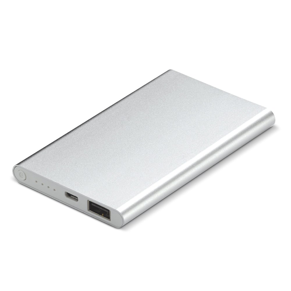 Mooie platte aluminium 4000mAh powerbank. Wordt geleverd inclusief kabel om de powerbank op te laden. Per stuk in geschenkverpakking verpakt.