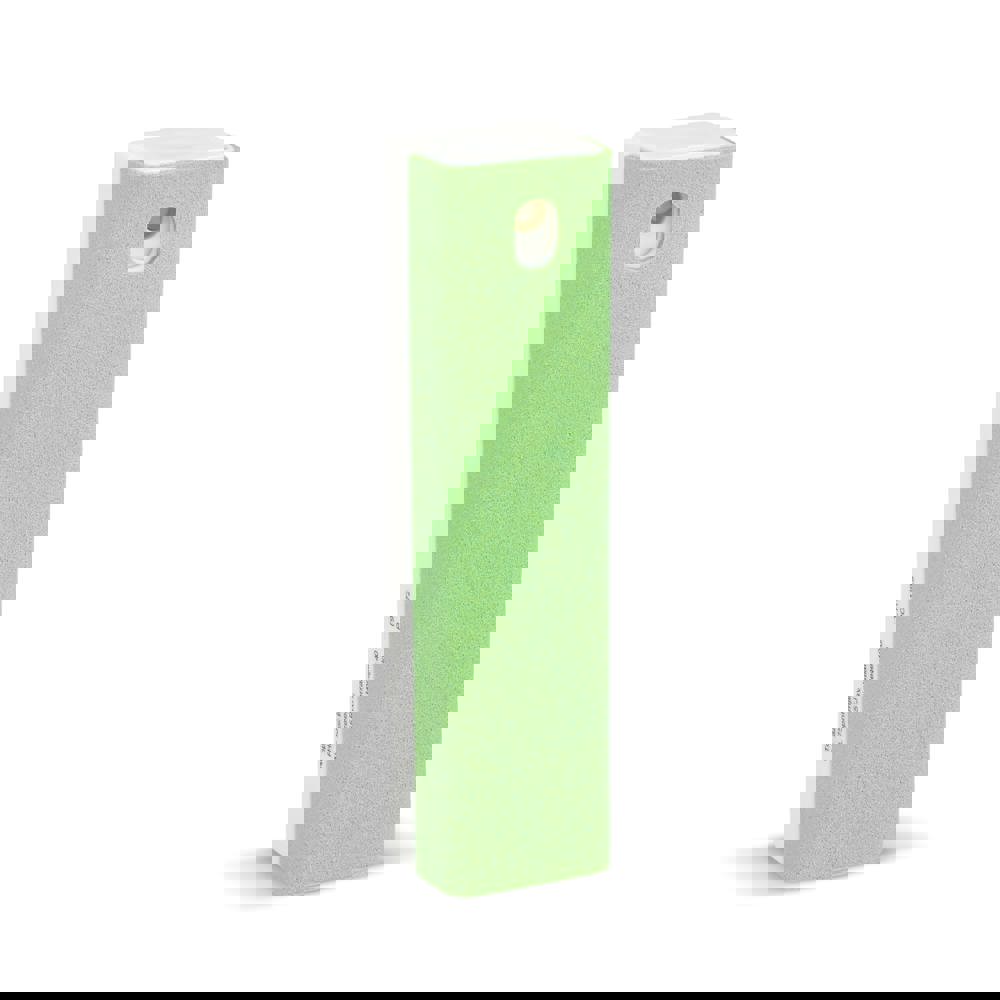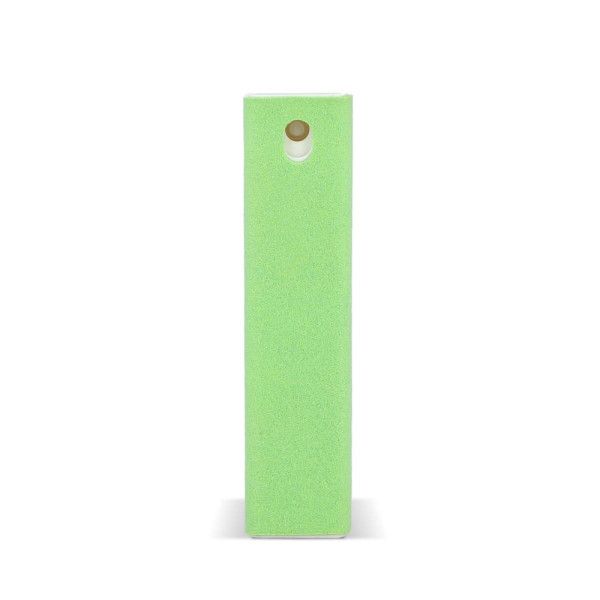 Rechthoekig blokje met schoonmaakspray en microfiber doekje in één voor het reinigen van allerlei beeldschermen.