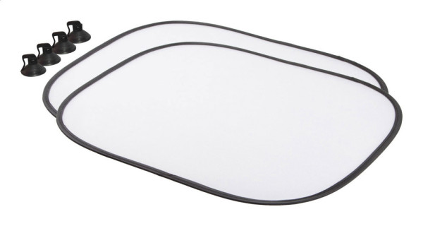 Opvouwbare sublimatie zonneschermen voor de zijramen, twee stuks. Incl. zuignappen.