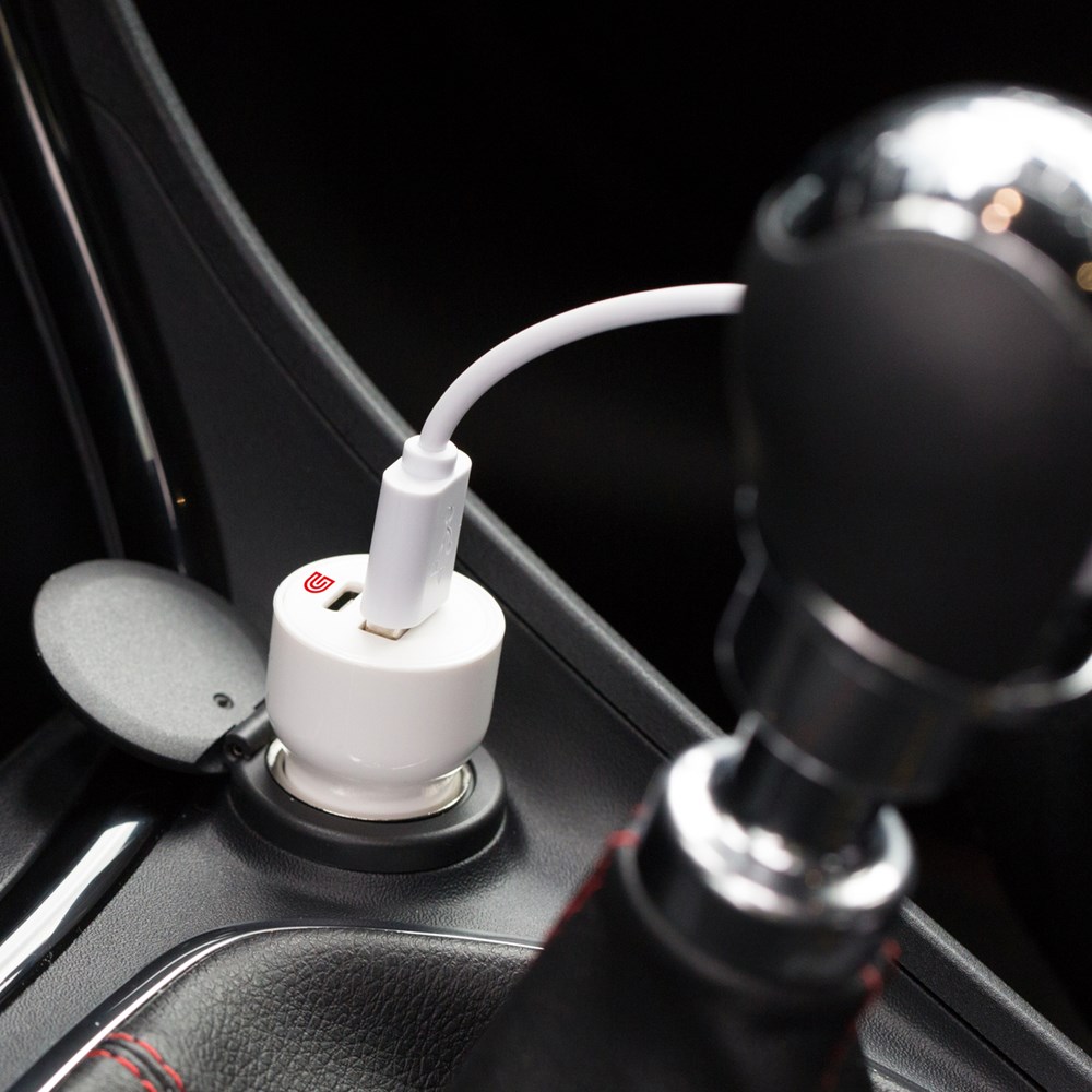 Met deze superlichte autolader kunt u gemakkelijk uw smartphone of tablet opladen tijdens het rijden. Hiervoor wordt het toestel via USB of USB-C kabel (dubbele poort) aangesloten op de lader. De oplader wordt op zijn beurt aangesloten op de sigarettenaansteker. De USB-poort biedt fast charge en de USB-C ondersteunt power delivery.