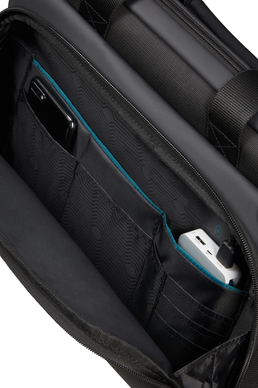 De Laptop Bag 14.1'' is de meest compacte laptoptas in de collectie. Het hoofdvak is geschikt voor A4 formaat documenten en is voorzien van een ritsvak om spullen apart in op te bergen. Ideaal voor bijvoorbeeld je kabels of oplader. Daarnaast is het compartiment voorzien van een gewatteerd 14,1'' Laptop en 10,5'' Tablet vak. Dankzij de geïntegreerde USB-poort kunnen apparaten onderweg worden opgeladen en met behulp van het slimme EasyPass-systeem kunnen ze tijdens het opladen gewoon in de tas blijven. Het ruime voorvak is voorzien van een compleet organisatiepaneel voor het opbergen van kleinere spullen en een apart vak voor je powerbank. Daarnaast heeft de tas een uitneembaar zakje voor bijvoorbeeld briefpapier of kabels. Optimaal comfort is gegarandeerd dankzij de stevige handvatten en een afneembare, verstelbare schouderband. Met behulp van de Smart Sleeve aan de achterkant is de rugzak eenvoudig te bevestigen aan de trekstang van een koffer.
