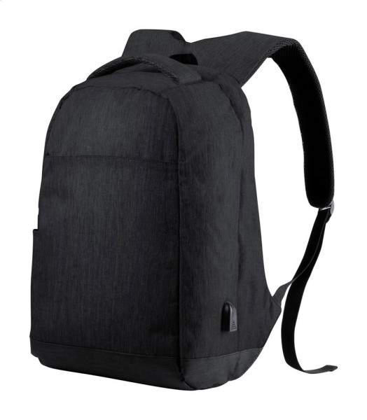 Antidiefstal-rugzak met meerdere vakken, gewatteerde laptop (15") en tabel (12") compartiment, gewatteerde rug en schouderriem. Met trolleyriem en ingebouwde USB-aansluiting voor powerbanks. 300D polyester.