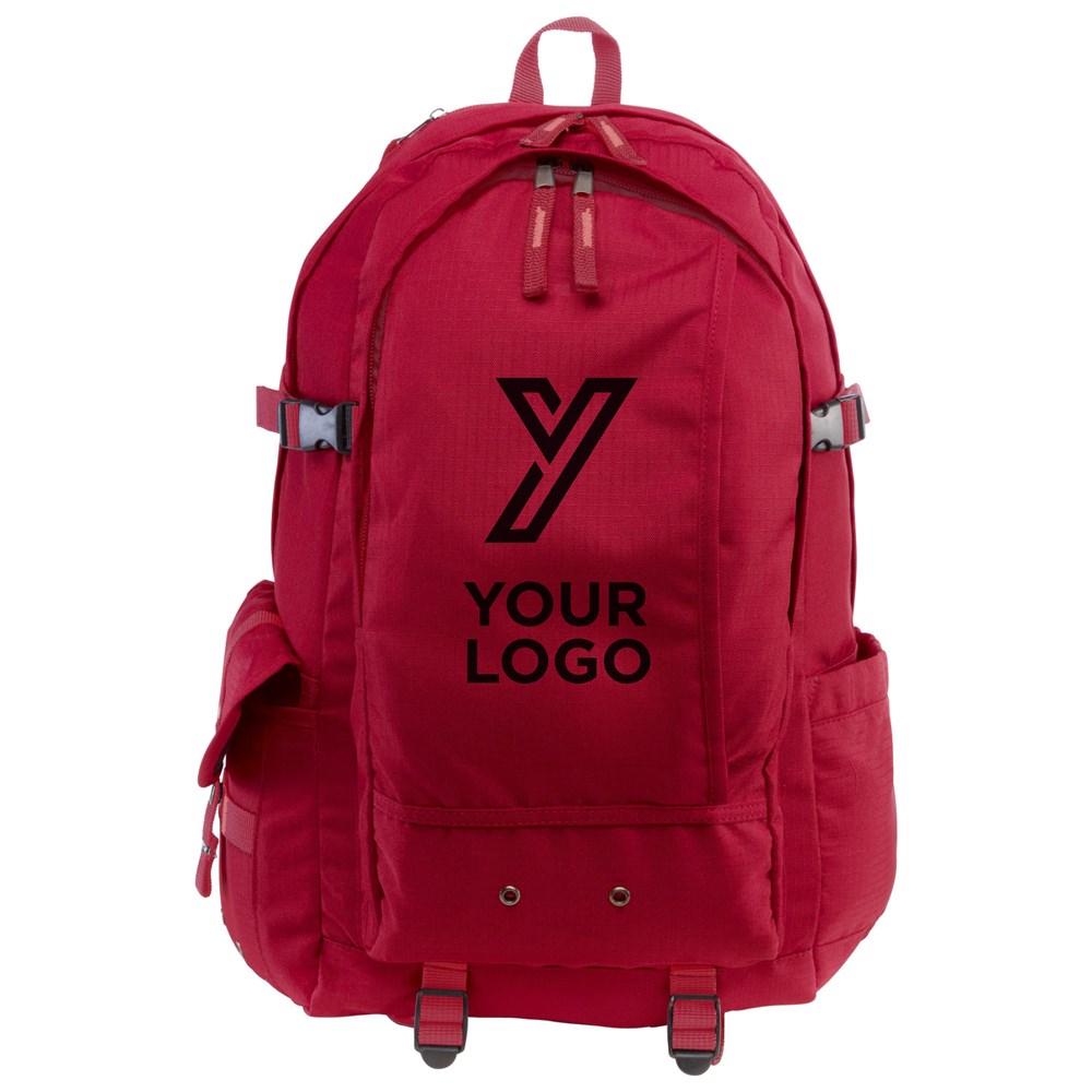 Ripstop rugzak (210D), met 2 ritsvakken, zijvak met drukknopsluiting en verstelbare gewatteerde schouderbanden.