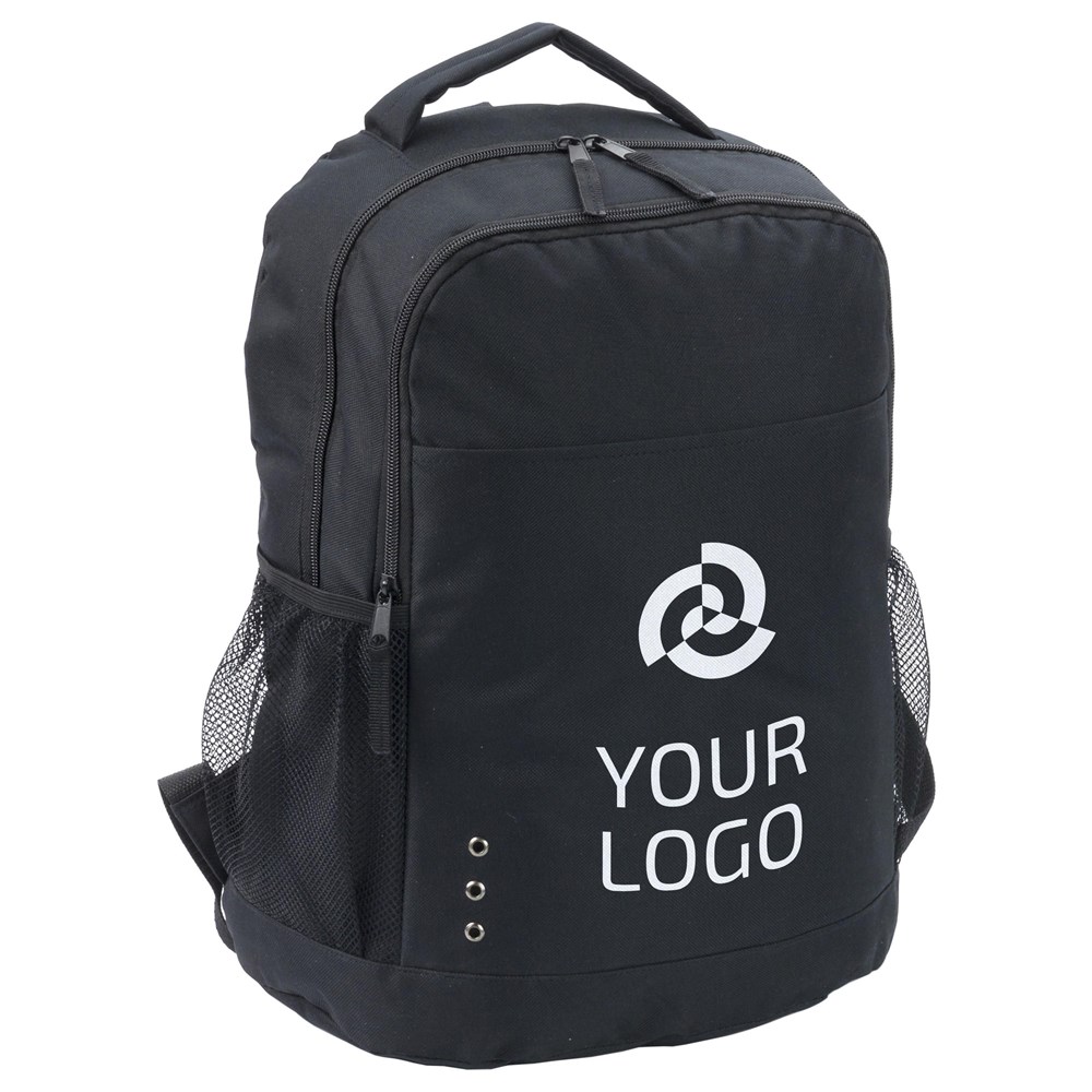 Polyester rugtas (600D) met ritsvak, twee zijvakken en verstelbare gewatteerde draagbanden.meer