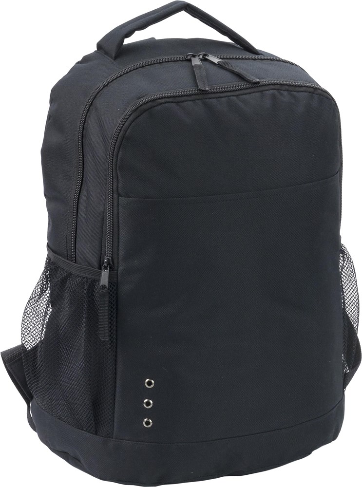 Polyester rugtas (600D) met ritsvak, twee zijvakken en verstelbare gewatteerde draagbanden.