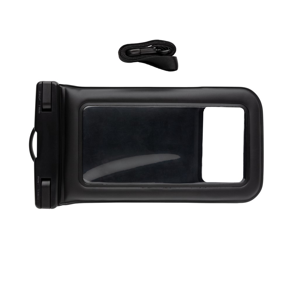 Waterdichte IPX8-hoes waarmee u uw telefoon 100% veilig bij u kunt houden tijdens watersporten, uw strand- en zwembadbezoeken of in de regen. Als de hoes in het water valt, blijft deze drijven en zorgt het koord ervoor dat u uw kostbare mobiel niet kwijtraakt. De hoes heeft speciale transparante delen zodat u gewoon foto's kunt maken en op het scherm van uw telefoon kunt blijven navigeren terwijl deze zich in de hoes bevindt. Geschikt voor telefoon tot 6.5"